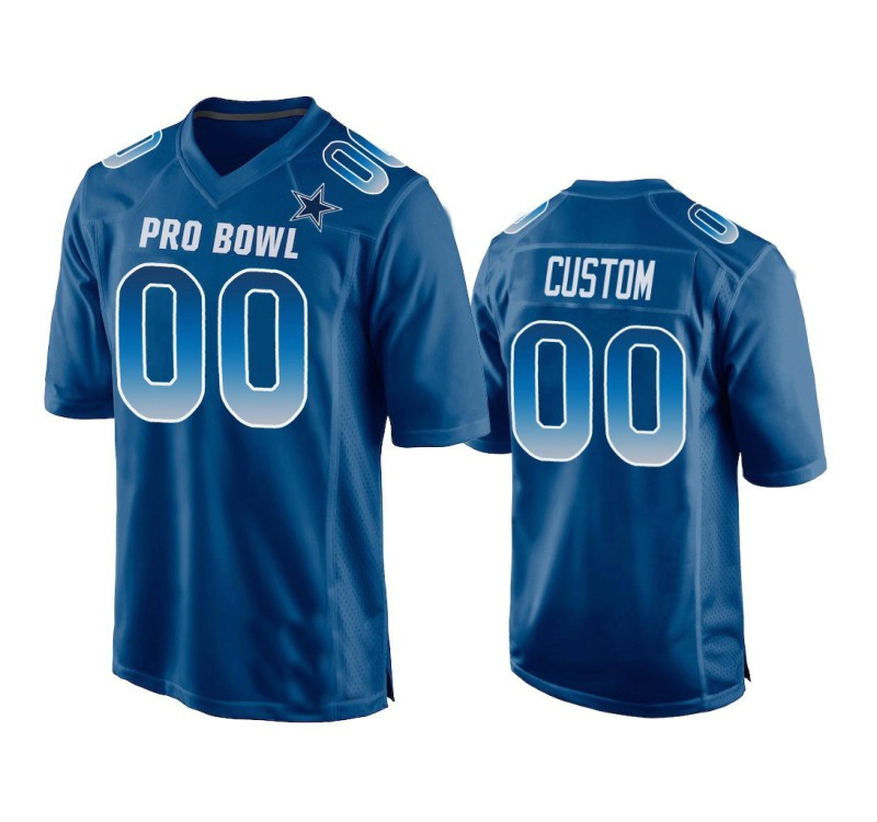 The 2019 Pro Bowl will differ from standard NFL game rules and format in that there will be no kickoffs and every quarter will have a 2 minute warning. Show off your love for Custom with this Men Dallas Cowboys #00 Custom NFC Nike Game Royal Jersey - 2019 Pro Bowl. The graphics are amazing and will show your loyalty to Custom.