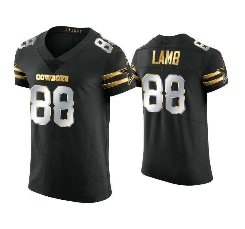 • Men Dallas Cowboys #88 CeeDee Lamb Black Golden Edition Elite Jersey