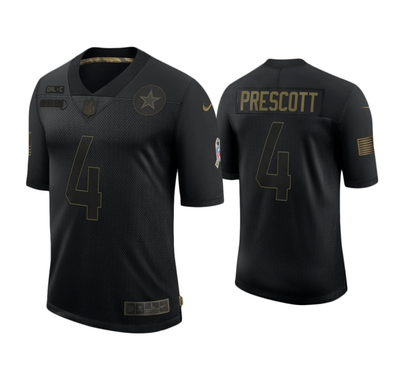 • Men Dallas Cowboys #4 Dak Prescott Black 2020 Salute to Service Limited Jersey