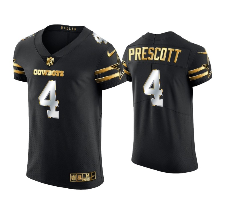 Men Dallas Cowboys #4 Dak Prescott Black Golden Edition Elite Jersey