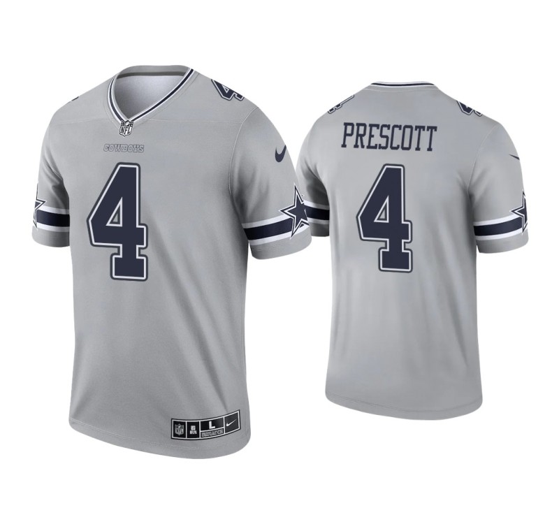 Men Dallas Cowboys #4 Dak Prescott Gray Inverted Legend Jersey