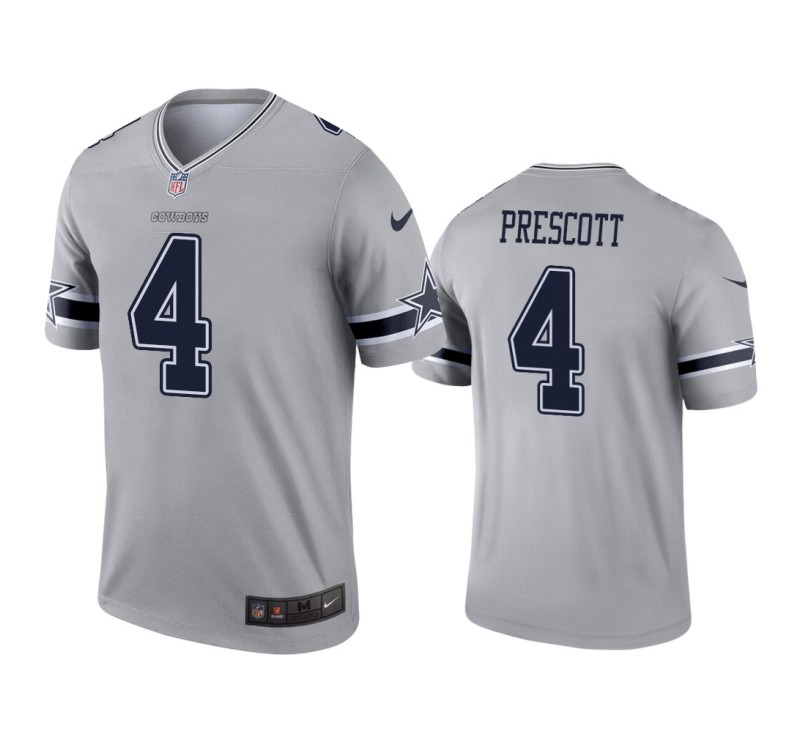 Show support for your favorite team all season long in this Men Dallas Cowboys #4 Dak Prescott Gray Inverted Legend Jersey. The colors and graphics on this top will set you apart as a hardcore Dallas Cowboys fan. No one will be able to deny you're the #1 fan when you cheer for your team in this Nike Inverted Legend Jersey.