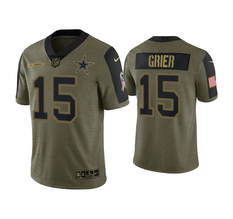 Cheer for the Dallas Cowboys with this Men Dallas Cowboys #15 Will Grier Olive 2021 Salute To Service Limited Jersey from Nike! It features amazing team and player graphics that are sure to help you show your team pride on game day. Your purchase of Salute to Service products will help the NFL's non-profit partners - the Pat Tillman Foundation, USO and Wounded Warrior Project - as they continue their important work to support our current and former military and their families.