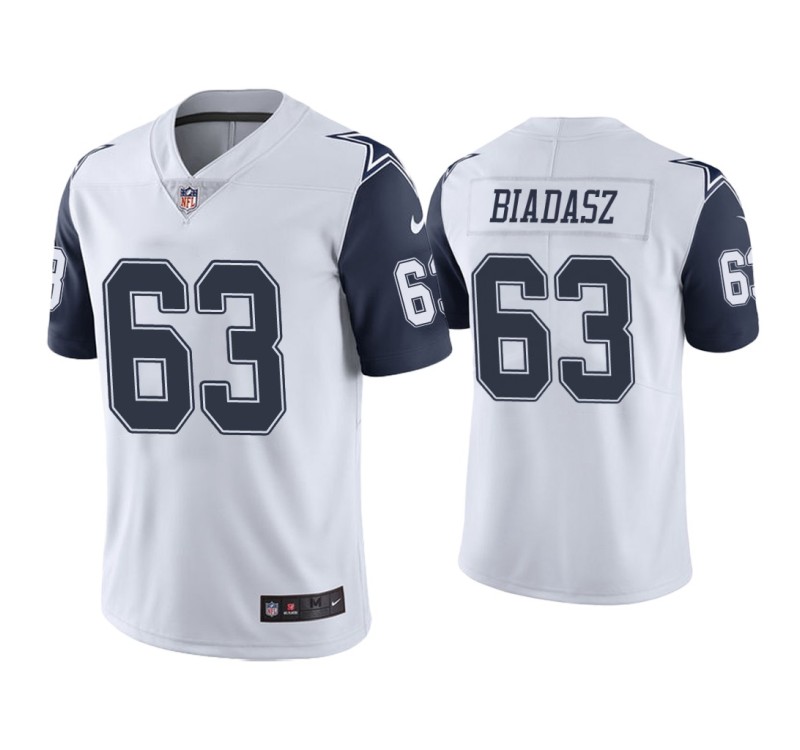 Look and feel like a big leaguer when you wear the cheap Men Dallas Cowboys #63 Color Rush Limited Tyler Biadasz White Jersey. It features a comfortable polyester design with quality Dallas Cowboys and Tyler Biadasz embroidered graphics that will quickly make this Tyler Biadasz Jersey one of your favorites.