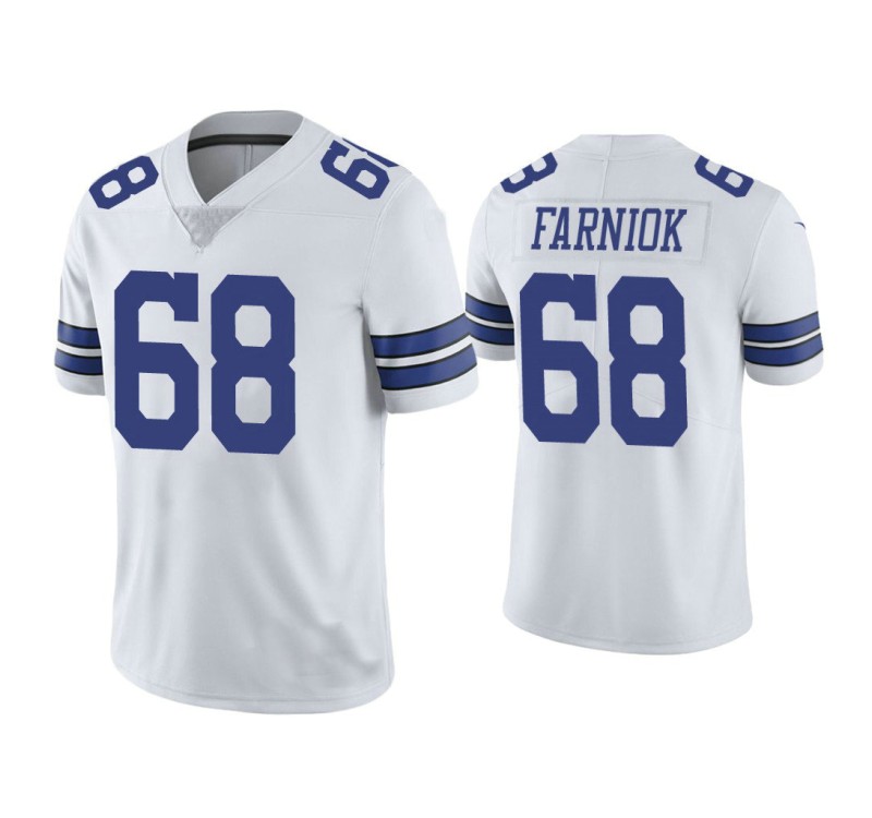 Rock the look of your favorite squad when you wear the Men Dallas Cowboys #68 Matt Farniok Vapor Limited White Jersey. It features a comfortable polyester design with quality Dallas Cowboys and Matt Farniok embroidered graphics that will quickly make this Matt Farniok Jersey one of your favorites.