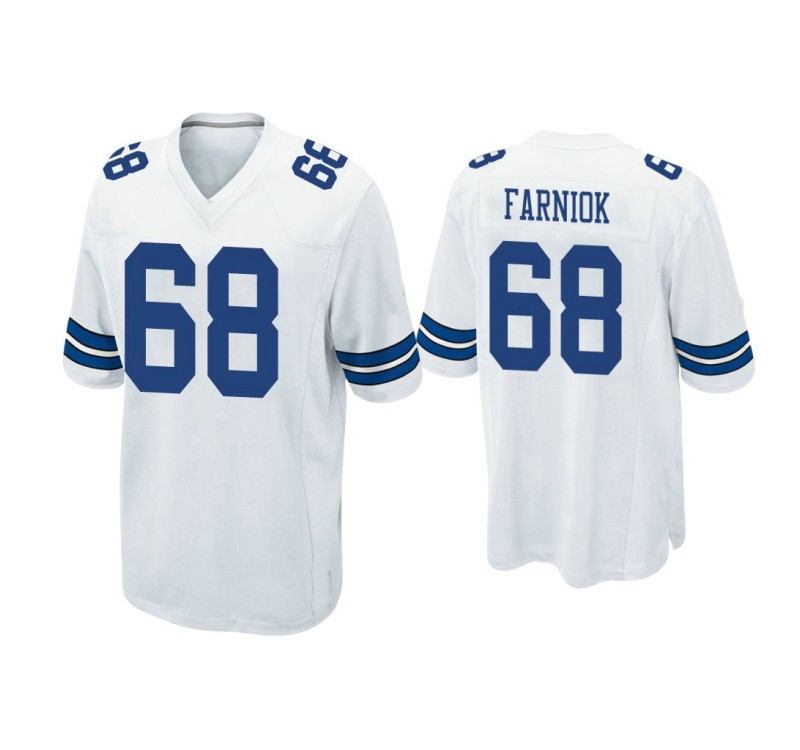 Let everyone know that you are a born and bred Dallas Cowboys fan with this Men Dallas Cowboys #68 Matt Farniok White Game Jersey. The graphics on this top will set you apart as a hardcore Dallas Cowboys fan. No one will be able to deny you're the #1 Dallas Cowboys Matt Farniok fan when you cheer for your team in this top.