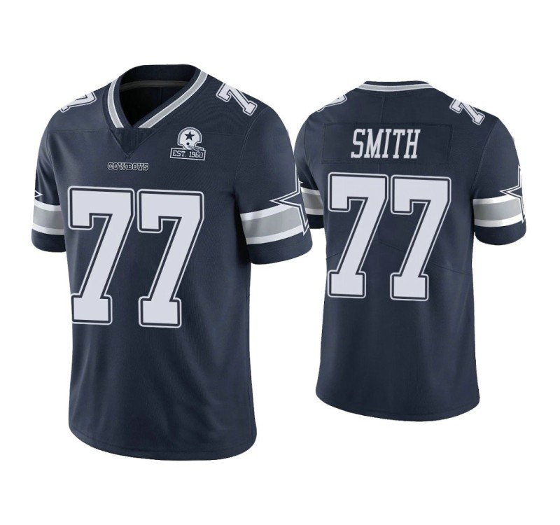 Cheer on the Dallas Cowboys in their 60th Anniversary with this Men Dallas Cowboys #77 60th Anniversary Tyron Smith Navy Limited Jersey. No one will be able to doubt what team and player you're pulling for.