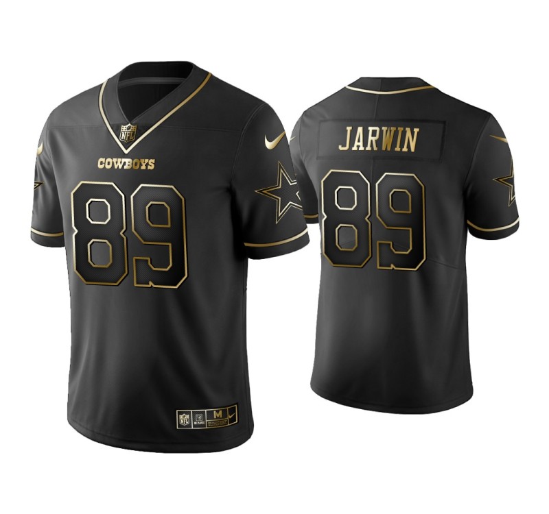 Every fan has various pieces of fan apparel that are a little different from the standard clothing that makes up most of their wardrobe or collection, and this Men Dallas Cowboys #89 Golden Edition Vapor Limited Blake Jarwin Black Jersey will definitely stand out from the others. The Gold Vapor Untouchable Limited jersey design includes a golden team graphics screen-printed on the front and on both sleeves, the golden player's name and number on the the front and back.
