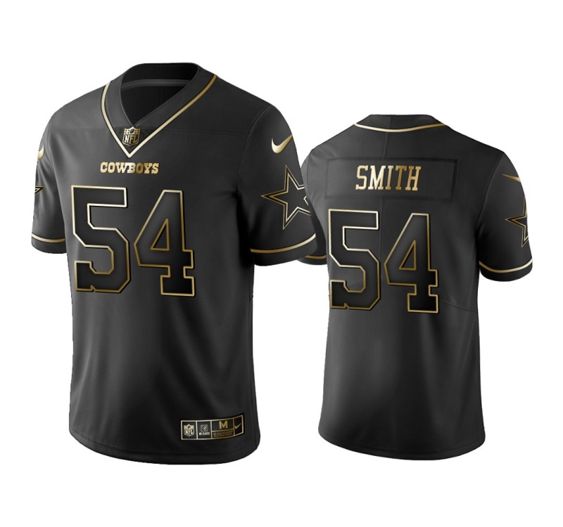 Every fan has various pieces of fan apparel that are a little different from the standard clothing that makes up most of their wardrobe or collection, and this Men Dallas Cowboys #9 Golden Edition Vapor Limited Jaylon Smith Black Jersey will definitely stand out from the others. The Gold Vapor Untouchable Limited jersey design includes a golden team graphics screen-printed on the front and on both sleeves, the golden player's name and number on the the front and back.