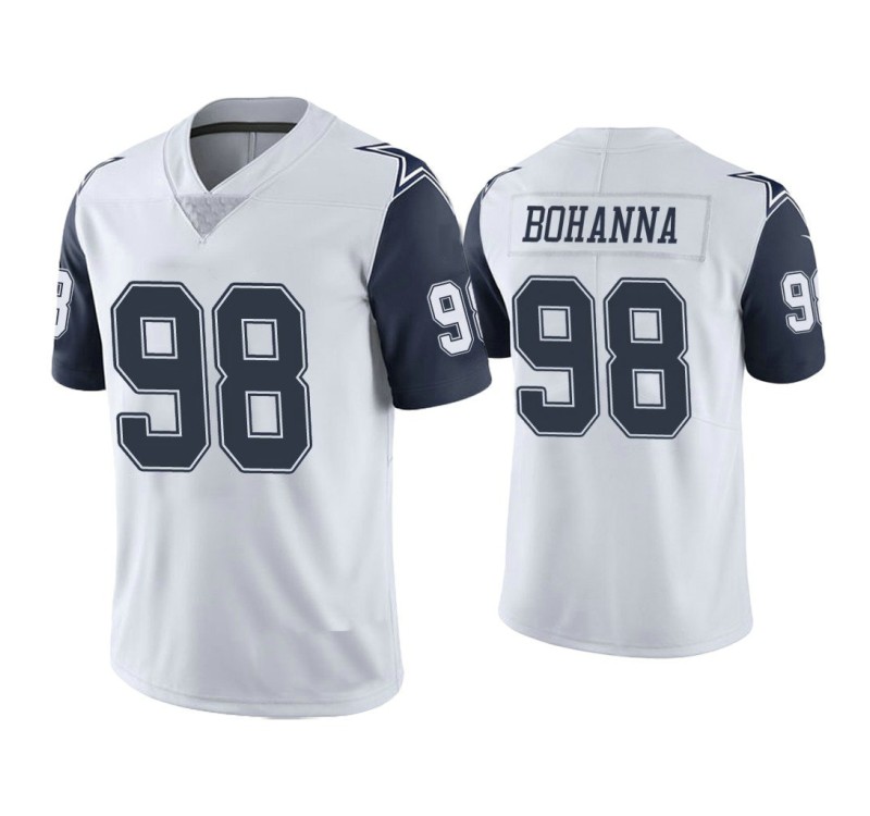 Look and feel like a big leaguer when you wear the cheap Men Dallas Cowboys #98 Color Rush Limited Quinton Bohanna White Jersey. It features a comfortable polyester design with quality Dallas Cowboys and Quinton Bohanna embroidered graphics that will quickly make this Quinton Bohanna Jersey one of your favorites.