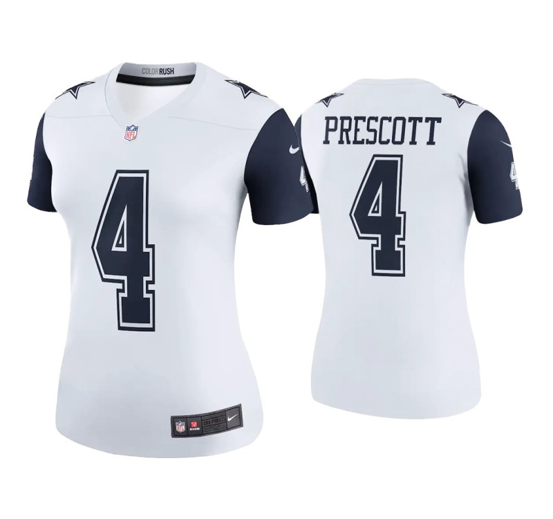 Women Dallas Cowboys #4 Dak Prescott White Color Rush Legend Jersey