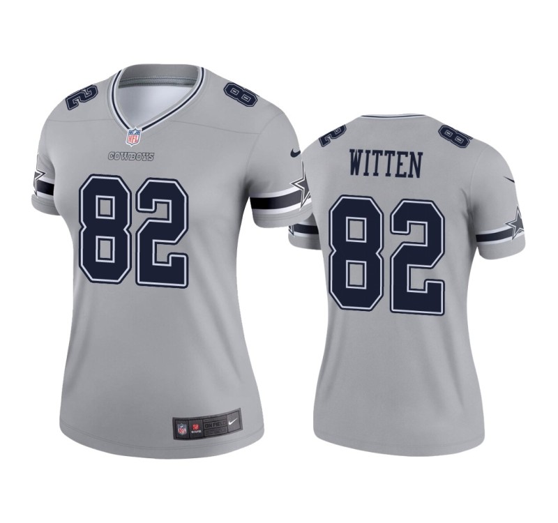 Liven up your team collection in this Women Dallas Cowboys #82 Jason Witten Silver Inverted Legend Jersey. The colors and graphics on this top will set you apart as a hardcore Dallas Cowboys fan. No one will be able to deny you're the #1 fan when you cheer for your team in this Nike Inverted Legend Jersey.